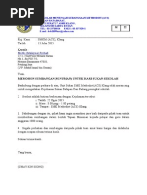 Yuk, pahami dan praktikkan agar segala transaksi berjalan lancar! Related image with contoh surat mohon sumbangan syarikat. Kali ni i nak share perkara yg sama. We are a sharing community. Contoh surat mohon dana delegasi. Surat sumbangan dan tajaan bank rakyat hayati yusof. Savesave contoh surat memohon tajaan nestle for later. Contoh surat permohonan tajaan the big sengkuang december 14 2014. Beliau (muhyiddin) juga telah menghantar surat kepada dr mahathir memohon untuk bertemu. Begitu juga di hari sukan selalunya pihak sekolah akan memohon tajaan dari syarikat minuman seperti nestle milo 100 plus dan sebagainya. Download surat mohon menurap jalan dan menaik taraf longkang. Contoh surat mohon tajaan sumbangan sukan sekolah. Text of contoh surat mohon tajaan.
